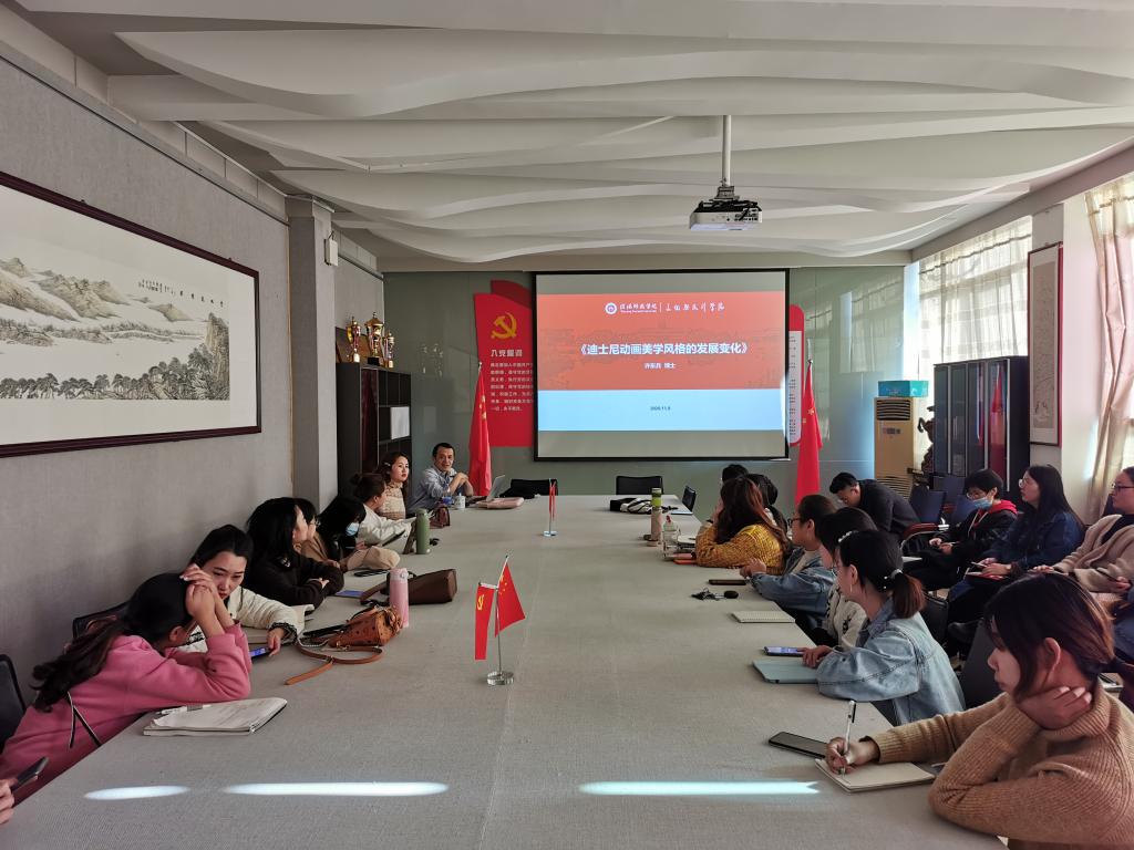 11月9日下午,太阳成官网许东兵博士在艺术楼会议室作了题为”迪士尼动画美学风格的发展变化”的专题学术讲座,太阳成官网全体研究生参加了此次讲座。