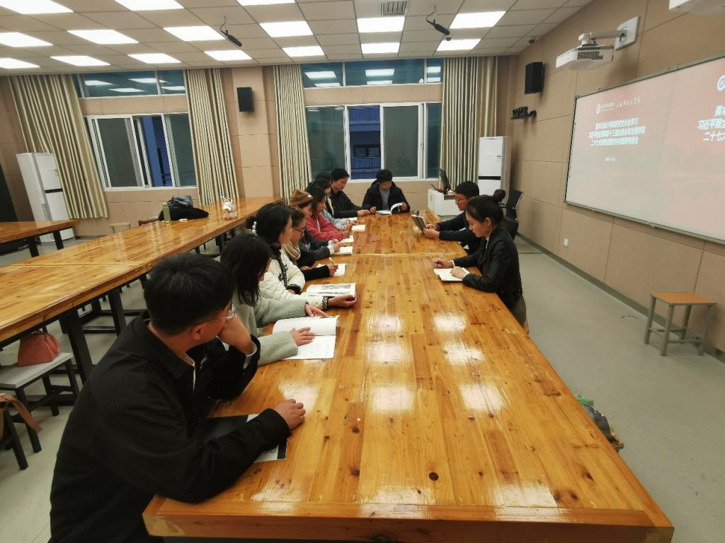 会上,研究生工作秘书刘文忠老师对《习近平致全国青联十三届全委会和全国学联二十七大的贺信》和《唱响新时代爱国团结踉党走的青春之歌一在中华全国青年联合会第十三届委员会关于全体会议和中华全国学生联合会第二十七次代表大会上的致词》这两个内容进行领学与精神研读。刘文忠老师强调,目前我们国家正处在夺取全面建成小康社会新胜利、开启第二个百年奋斗目标新征程的历史之交,而大家也正处在人生成长的黄金时期。大家一定要深入学习习总书记致辞内容,将习总书记对大家的殷殷期望转化为实际行动,志存高远、奋勇向前。全面贯彻落实大会精神,为祖国建设、为中国梦的建设添砖加瓦,要进一步加深对贺信精神的理解,将个人理想融入到强国梦想之中,在实现中华民族伟大复兴的追梦路上点亮自身的理想信念,实现人生价值。此后,每位参会同学结合自己的专业学习、人生规划等方面,并就学习习总书记的致辞内容谈了自己的认识与感想。
