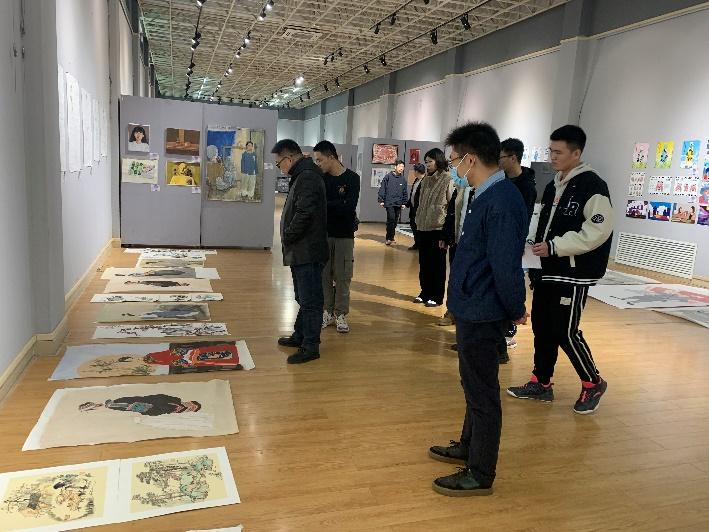 11月26日下午,在学院展厅举办了研究生美术作品比赛和教育硕士三笔字比赛作品的评选,活动由学院副院长张伟副教授、邹青宸老师担任评委。