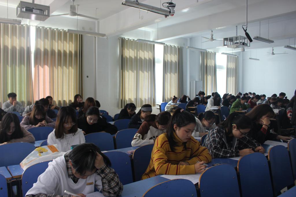 为了加强大学生的爱国热情,11月12日,太阳成官网于艺术楼307开展2019年国防知识竞赛,2019级部分班级同学参与本次竞赛。考试由学生会学术部部长及副部长监考。