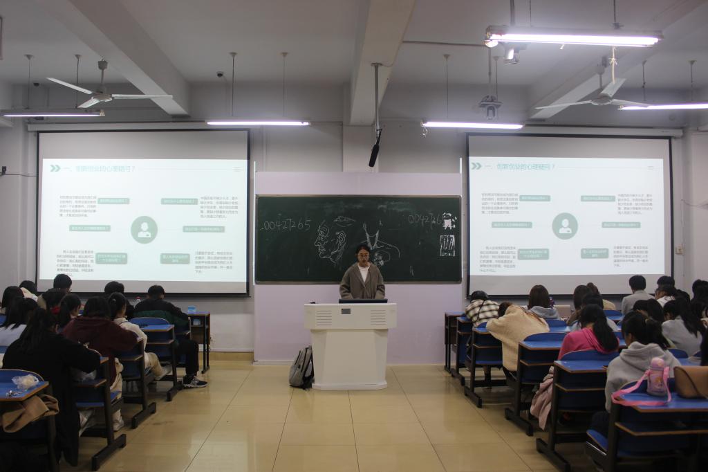 首先由17级环境设计班的束林林为同学们讲解什么是创新创业和创新创业的意义等问题,让同学们对创新创业有了基本的了解。在讲解过程中,她以自身创业的经历向同学们分享了如何对待创业,如何适应时代的变化,以及如何更好地完善自身的人格修养等方面的经验,使同学们受益匪浅。随后,17级环境设计班的史亚旗以幽默风趣的语言和同学们进行了热烈的交流,向同学们详细的介绍了自己的创业经历和谭山工作室,为同学今后的创新创业提出了各种各样的建议。同学们表示通过倾听学长学姐的讲解不仅从中了解了创新创业的意义,更对未来工作的方向有了进一步的明确。最后,曹德宝建议同学们要确立目标,明确努力方向,认真学好专业知识,为今后自身创业工作打下坚实的基础。整场活动同学们认真听讲,现场掌声不断、气氛热烈。