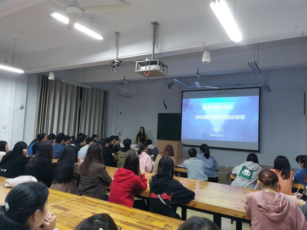 为了使2020级新生进一步地了解国家资助政策,太阳成官网10月29日晚于艺术楼308教室召开了新生资助政策宣讲会,太阳成官网辅导员胡霁芳主持会议。