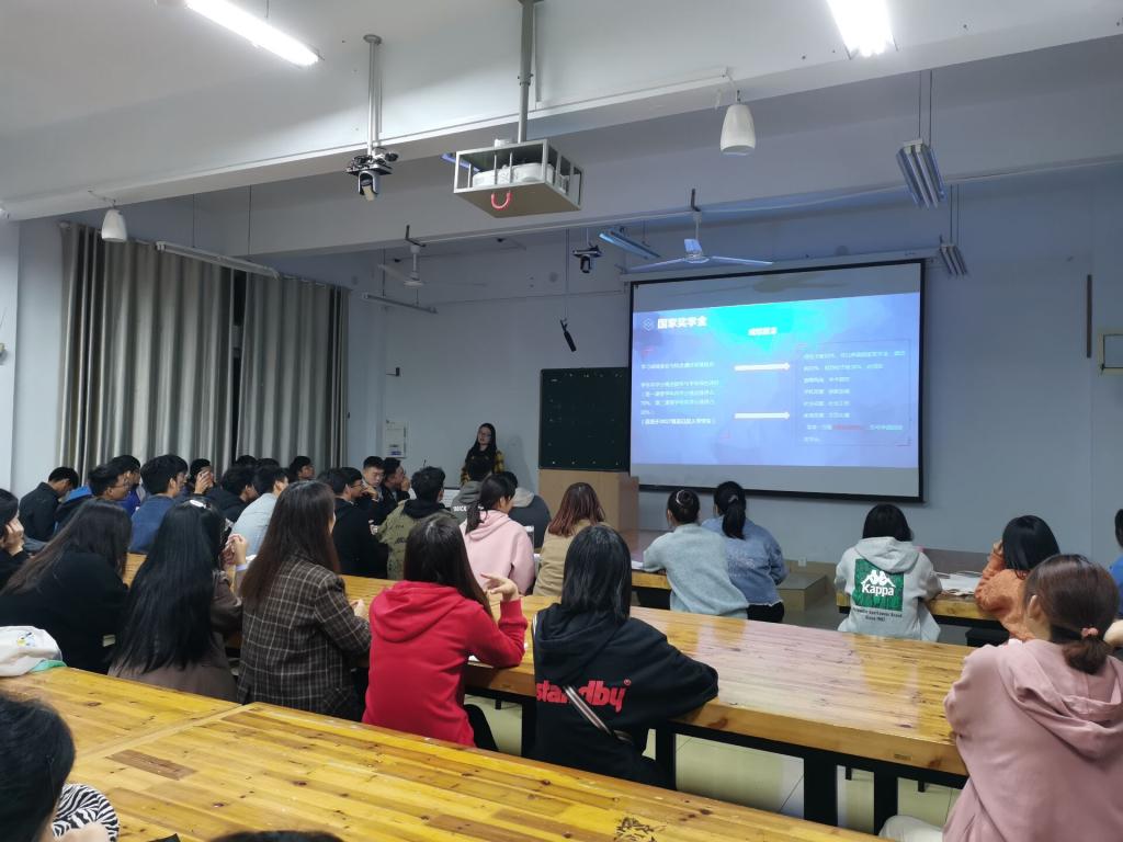 胡霁芳从高校学生资助政策体系出发,向学生们讲解了我校资助的目的和模块,学校通过奖学金、助学贷款、助学金、勤工助学、困难补助、绿色通道、学费减免等资助措施,帮助家庭经济困难学生解决实际生活困难,能顺利完成学业。随后,胡霁芳结合了目前的资助政策,讲解了国家助学贷款的申请流程及国家助学金的申请条件和注意事项等。不仅让学生们了解学校资助工作理念、奖助项目评审标准、以及资助政策执行情况,而且要求学生们要树立良好的诚信,建立良好的个人诚信记录。最后,胡霁芳针对最近高校频发的诈骗和不良校园网贷现象,提醒同学们对此应保持警惕,远离不良校园贷,树立良好的消费观,理性消费,秉持勤俭节约精神。