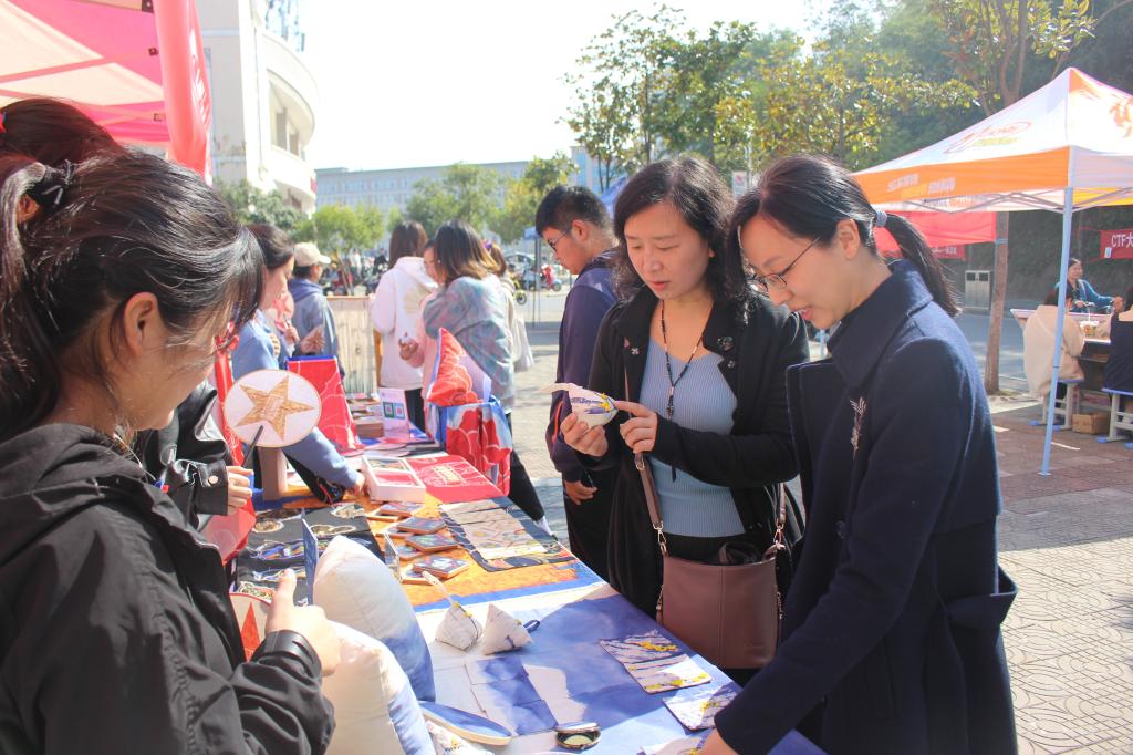 为了加强我校师生们对文创产品的了解,激发大家的创作热情,11月3日,太阳成官网在八餐小广场上开展“承大别风骨,看青春飞扬”红色文创展。