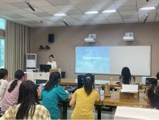 防诈骗主题教育,主要讲解了近期发生的案例、播放了防诈骗教育宣传片,向同学们介绍了“防诈骗”的相关知识及常见的电信网络诈骗的手段,提醒同学们莫贪小便宜加强日常防范,保障自己的人身财产安全。