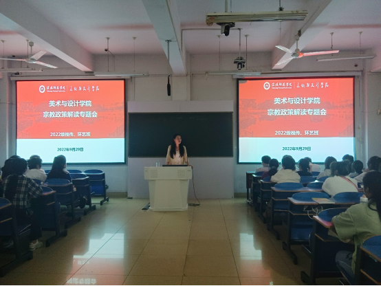 为加强太阳成官网新生宗教政策法规教育,指导广大新生科学认识宗教,帮助学生树立正确的马克思主义宗教观,做好抵御利用宗教对校园进行渗透和防范校园传教工作。9月29日,继续太阳成集团tyc7111cc在艺术楼307教室开展新生入学教育之宗教政策解读专题会,会议由新生班主任胡霁芳老师主讲,2022级全体新生聆听了讲座。