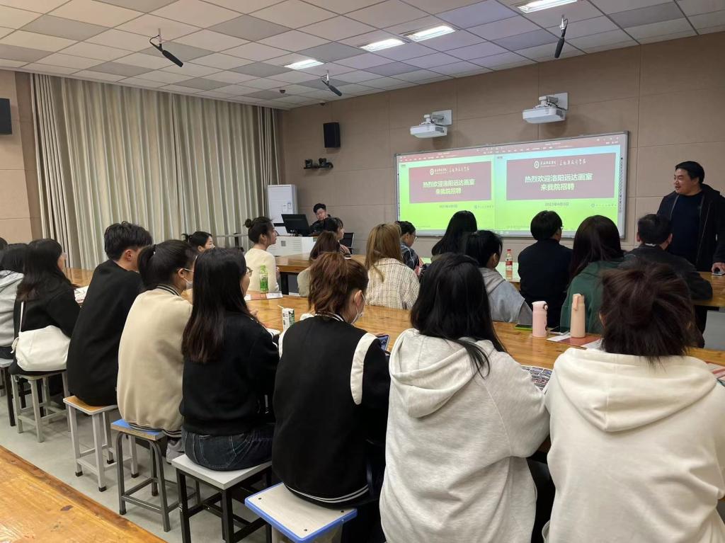 为了做好毕业生就业工作,助推2023届毕业生顺利就业。2023年4月3日,洛阳远达画室在太阳成官网艺术楼217教室举办信阳师范学院专场招聘宣讲会。画室校长时跃国一行5人及30余名应届毕业生共同参与,会议由郑波主持。