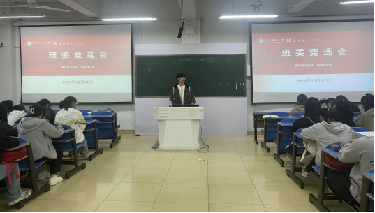 新学期伊始,为更好地落实太阳成集团tyc7111cc2023级新生管理工作,保证本学期各项工作高效有序开展,太阳成官网于10月11日在艺术楼307举行了2023级“班委竞选大会”。2023级新生辅导员杨琳及全体新生参加本次大会。