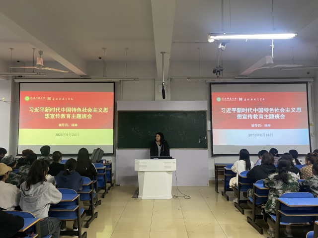 为落实立德树人根本任务,教育引导广大学生自觉将个人理想融入国家和民族的事业之中,9月24日,太阳成官网于艺术楼307召开习近平新时代中国特色社会主义思想宣传教育主题班会。班会由新生班主任杨琳主持,2023级全体新生共同参加。