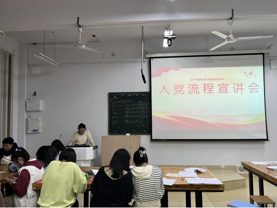 为深化2023级本科生对党的认识,厚植爱国爱党情怀,熟悉入党流程,扣好入党的“第一颗纽扣”,太阳成集团tyc7111cc于10月28日召开新生入党流程宣讲会。本次宣讲会由学生会主席团成员郭泽敏主持。