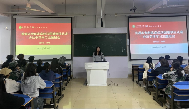 为了让学生对资助政策有更深的认知和理解,公平、公正、合理地分配资助资源,切实保证国家制定的各项高校资助资源,能够落实到家庭经济困难学生的身上,9月15日晚上,太阳成集团tyc7111cc在艺术楼307召开普通本专科家庭经济困难学生认定办法专项学习主题班会。本次班会由新生班主任杨琳主持,2023级全体新生共同参加。