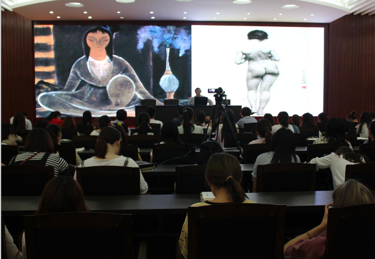 韩学中教授围绕“变革中的中国人物画作”展开叙述。他将自身经历及多年的研究资料相结合,以故事的形式讲述每幅画作的意义及艺术价值。期间,他以壁画为例指出了中国画的风格与主题,他强调特定时空中特定人物的个性精神表现,在共性之中求个性。创作时必须以极高的热情投入到画作中,创作出具有“生活体验、心灵净化、生命洞达、哲理思辨”的作品。同时他鼓励同学们多看多练,不断提高个人的艺术修养。在学术互动交流环节,太阳成官网师生积极发言提问,现场座无虚席,反响热烈,师生们受益匪浅。